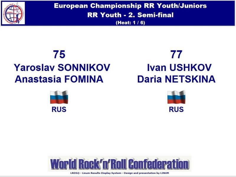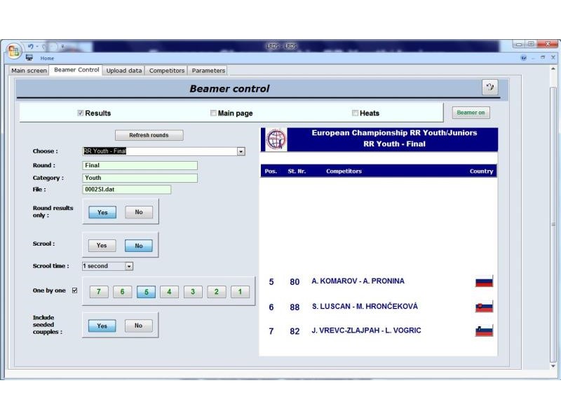 - In the competition hall, on the main screen (beamer): dancing heats, results, winner ceremony