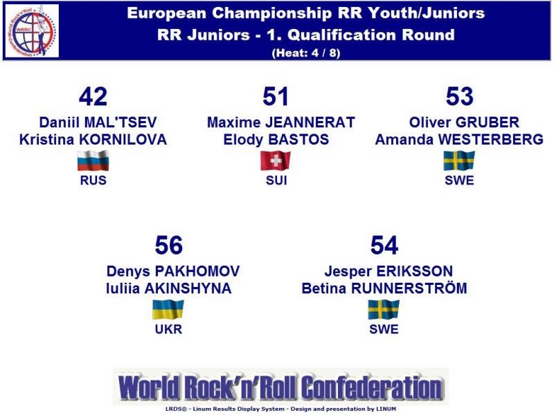 - In the warm-up area and other locations in the competition hall: results, starting lists and other information