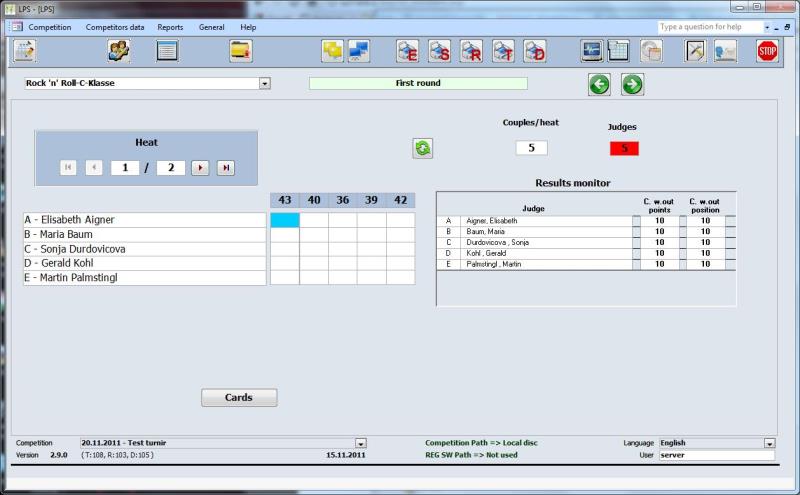 - After several heats for each judge separately (common situation on the competitions for the formations)