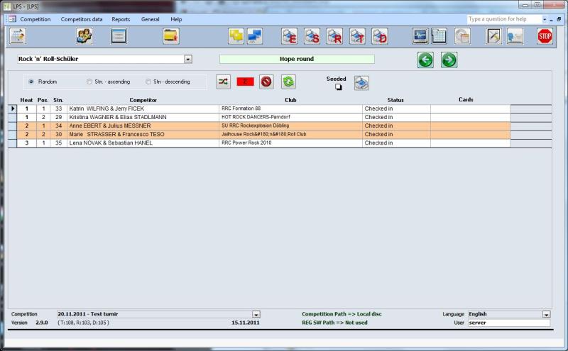 - More complex algorithm for the random distribution of couples/formations in the heats, with the possibility to completely exclude the intervention by the protocol or observer.